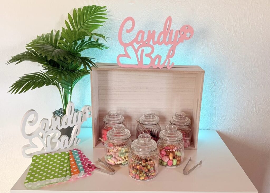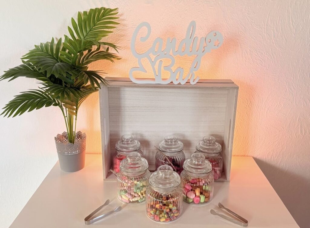 Du möchtest für Deine Gäste eine Auswahl an Süßigkeiten zur Verfügung stellen? Dann miete Dir ganz einfach unsere Candybar. Eine Candybar darf auf keiner Geburtstagsfeier oder Hochzeit fehlen. Eigentlich auf keiner Feier, egal welcher Anlass. Solch eine Idee kommt bei den Gästen immer sehr gut an.